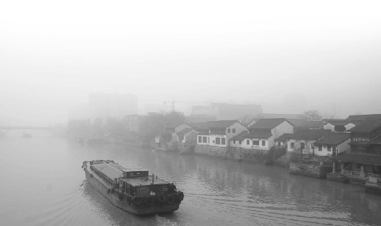 昨天上午,杭州拱宸桥畔仍被浓厚的雾霾所笼罩。连国庆摄