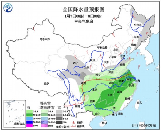 随着冷空气逐步南下,并与南方暖湿空气交融,预计未来24小时,西南地区东部、江汉、江淮、江南、华南大部有小到中雨天气。另外,西北地区中东部、华北南部、黄淮大部、东北地区东部、川西高原北部、贵州西北部等地将有小到中雪或雨夹雪天气。