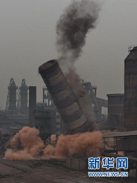 这是唐山市兴业工贸有限公司450立方米高炉爆破现场(2013年11月24日摄)。