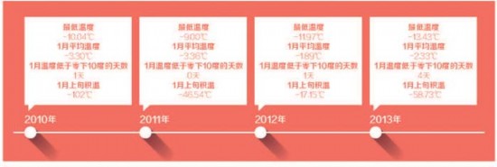 2010年至2013年北京城市生态系统研究站1月份最低温度和积温
