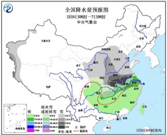 预计今天白天到夜间,雨雪天气范围将继续扩大,华北地区也将被其收入囊中。具体预报为:未来24小时,新疆西南部、西藏西部、内蒙古中西部偏南地区、西北地区东部、华北大部、黄淮、江汉、江淮、江南西北部等地有小到中雪或雨夹雪天气;河南中南部、湖北北部、安徽北部、江苏西部等地有大雪,其中河南南部、湖北北部、安徽西部等地的部分地区有暴雪(10~16毫米),中央气象台继续今晨6时发布暴雪黄色预警。另外,西南地区东部、江南、华南北部等地有小到中雨天气。