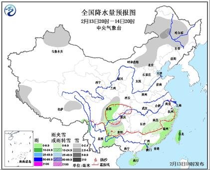 再来关注降水情况。未来三天,南方降水持续,不过降水相态将由雪逐渐转为雨。