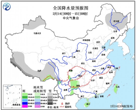今天(2月14日)是农历正月十五元宵节,又称“上元节”。中央气象台预计,今天全国大部地区雨雪罕至。似乎是因为不忍破坏节日的兴致,已被雨雪天气纠缠一周的南方地区今日几乎全线放晴,昨天还在湖北东部、浙江中西部、江西北部等地露面的降雪天气戛然而止。今天白天到夜间,只有贵州西部的部分地区有冻雨或雨夹雪,华南南部及台湾等地的部分地区有小雨。与此同时,北方地区的降雪也十分稀少,未来24小时,仅新疆西北部、青海南部、黑龙江等地的部分地区有小雪或阵雪。不过值得一提的是,今天起青藏高原及其以东大部地区自西向东的雨雪天气过程将逐步展开。今天白天到夜间,西藏西南部的部分地区有中雪,局地大到暴雪。元宵节过后,我国又将迎来一轮大范围雨雪天气。