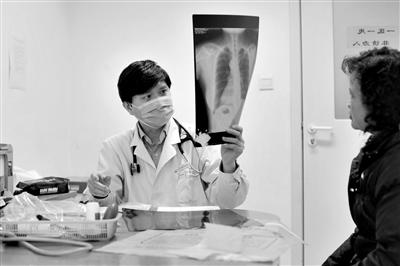 昨日中午,朝阳医院呼吸与危重症科主任医师翟振国还在接诊。雾霾天致呼吸科病人扎堆。记者 吴江 摄