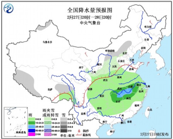 另外,未来3天,南方大部有小到中雨,其中28日至3月1日,江淮南部、江南北部部分地区有大雨,局地还将有暴雨天气。由于阴雨天气持续,请上述地区的朋友们外出时注意携带雨具;雨天路滑,行车时请注意交通安全。