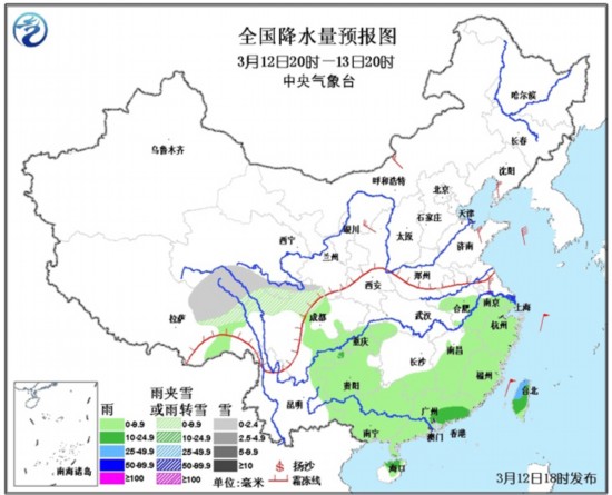 今天(12日)白天,较强冷空气的步步入侵使得长江以北的大部地区出现大风降温天气,其中华北、黄淮、江淮等地部分地区降温幅度达8~12℃,透出丝丝寒凉之意。而南方地区的降雨依然持续,云层难以消散。
