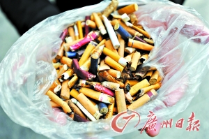 昨日上午,记者随叶榄来到罗湖区东湖公园。他打开随身的塑料袋,向记者展示已经捡到的烟头:“这是我来深圳这几天在大梅沙和中心公园捡的烟头,还不够拼,还得捡。”说罢,叶榄低头在东湖公园捡起了烟头。