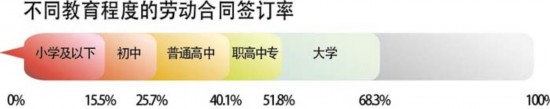 从调查结果看,教育程度越高,劳动合同签订率也越高。当前,在低端劳动力市场中,劳动保障程度较低。