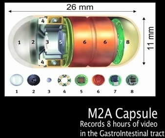 该项目中拍摄所用的胶囊内镜。