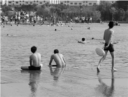 垃圾湖变身游泳场