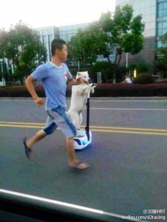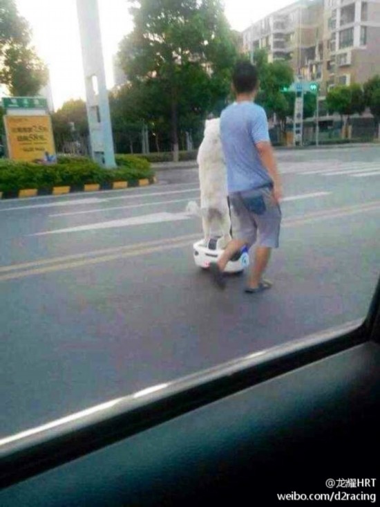 @京华时报:【深圳惊现狗驾代步车遛主人】人遛狗不是新闻,但宠物狗遛主人就很少有人见到了,更不要说宠物狗驾驶代步车在街头遛主人!5日下午,网友@龙耀HRT 昨日下午拍到下图这一幕。不过有网友认为这种行为违反了交通规则,存在安全隐患。