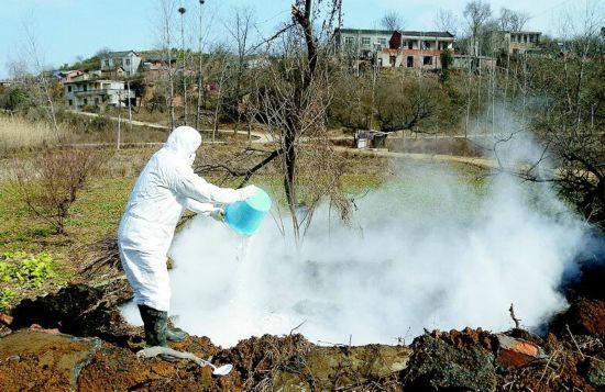 刨人祖坟,不受欢迎。一户户做通思想工作后,再将墓穴推倒、填平、消毒……大热天里,戴着护目镜、穿着厚厚防护服的工作人员,几分钟就全身湿透。