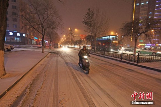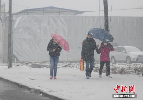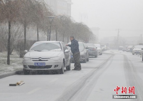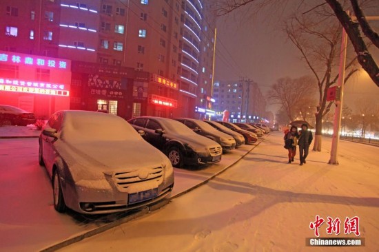 11月30日,吉林市民和车辆在积雪的路上前行。当日是11月的最后一天,吉林省迎来今年入冬以来最明显的降雪降温天气,不仅大到暴雪光临,气温也将一路跳水,局地降温20℃。吉林省气象部门29日发布明显降雪、大风和寒潮降温预报,预计从今天至12月3日吉林省将出现入冬以来最明显的一次降雪降温大风天气过程。 中新社发 图片来源:CNSPHOTO