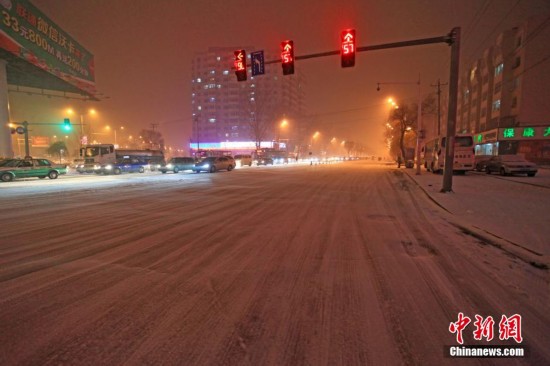 11月30日,被纷飞的雪花笼罩着的长春市变得白茫茫一片,远处的建筑物、车辆已经难以看清。吉林省气象台预报,自11月30日起连续3天,吉林省东南部的降雪将持续,局地将出现大到暴雪甚至大暴雪天气。受较强冷空气影响,吉林省气温自西向东将明显下降,最高降幅将达16-18℃。其中,最低气温将出现在12月2日和3日早晨,北部和东部山区可达-18至-20℃。张瑶 摄