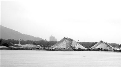 长江鄂东江段的岸边砂堆。 记者 皮曙初 摄