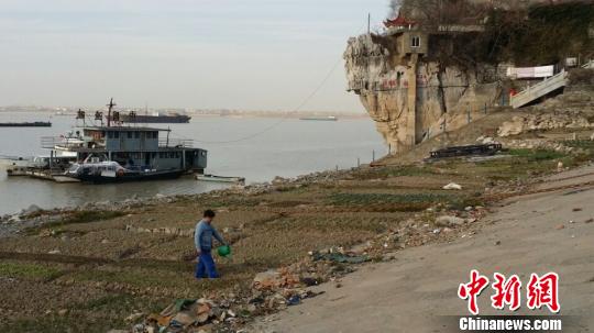 图为位于江西九江湖口县境内的石钟山下,因水位下降,裸露的岸堤变身“菜地”。 姜涛 摄