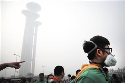 10月25日,奥森公园南门,市民在雾霾中跑步。 新京报记者 李飞 摄