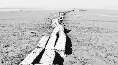 2014年年底,鄱阳湖逼近极枯水位,湖底明代石桥显露。 |