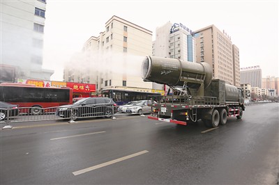 1月6日,河南省郑州市金水区城市管理局新购置的“防霾神器”开上街头,开始工作。据介绍,这辆多功能降尘洒水车,俗称“雾炮车”。该车一次能装10吨水,可供雾炮喷射75分钟,喷射的水雾颗粒达到微米级,最远能达到近百米,能有效分解空气中的污染颗粒物、尘埃等,从而有效缓解雾霾。