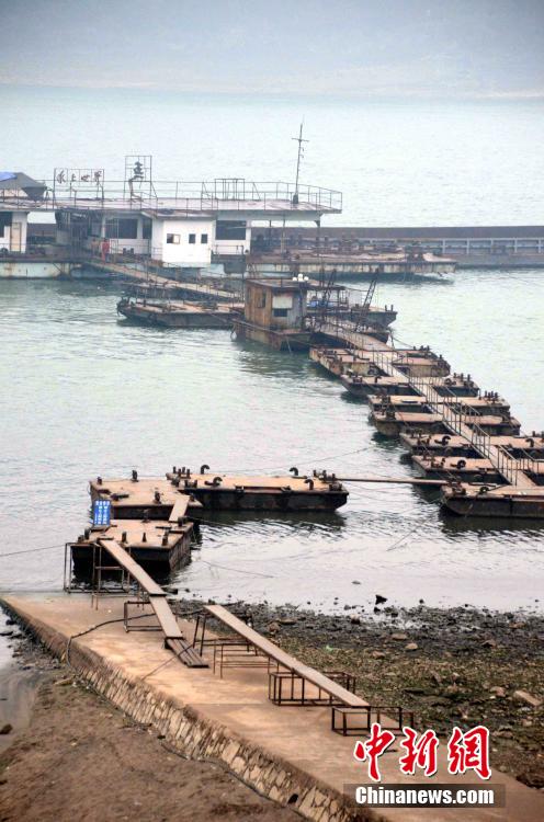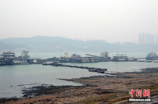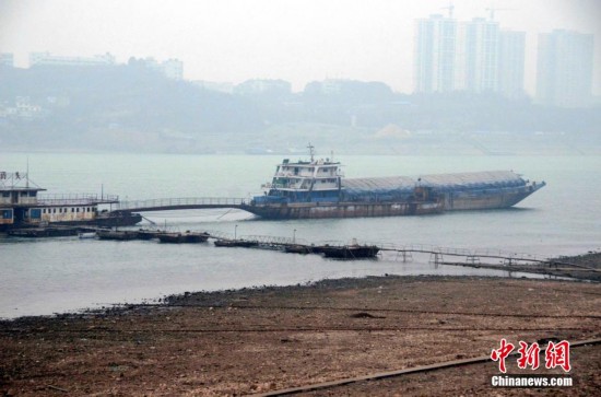 1月27日,湖北宜昌长江段水位只有39.47米,大遍江滩裸露,裸露滩地虽主距航道还有一段距离,但相关部门还是提醒过往船只注意行航安全。中新社发 刘保平 摄 图片来源:CNSPHOTO