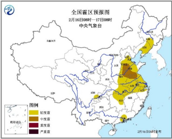 从今天早晨开始,一股冷空气将自北向南吹散华北、黄淮等地的雾霾,但在冷空气达到之前,华北南部、黄淮、江淮、江南北部、江汉等地仍有轻至中度霾。另外,今天早晨至上午,河北东南部、山东南部、江苏北部、福建东北部、广西北部和东南部、广东西部等地的部分地区有大雾。