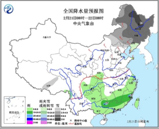 人民网北京2月21日电 (史雅乔)20日,今年以来最大范围的雨雪天气现身我国中东部地区。预计天白天起,随着东北地区降雪的加强和华北及西北地区东部等地降雪的减弱消散,中东部地区的雨雪将明显分为两个阵营。