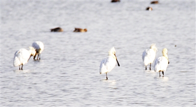 据了解,白琵鹭是荷兰的国鸟,嘴极像琵琶,故得名,分布在欧洲南部及亚洲,少数分布于非洲,主要栖息于开阔平原和山地、丘陵地区的河流、湖泊、水库岸边及其浅水处和沼泽湿地,以虾、蟹、水生昆虫、小鱼等小型脊椎动物和无脊椎动物为食。最近的一次数据统计称,它在全球的总数量是3.1万至3.4万只左右。多数国家只有几百对,有的国家已经绝迹。在我国,白琵鹭一部分常年留在南方,另一部分候鸟则在春季迁徙到北方繁殖,9、10月份左右南迁。(记者 马骋)