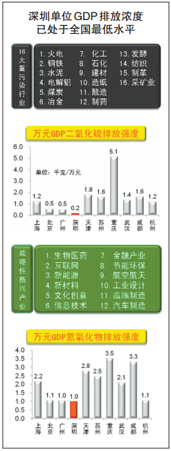 实践和数据也佐证了发展与环保能够共赢的观点:深圳每平方千米产出的GDP居内地大中城市首位;万元GDP能耗、水耗却在持续下降,化学需氧量、氨氮、二氧化硫减排量提前两年超额完成“十二五”规划任务;而2014年的年均PM2.5达到了33.6微克/立方米,在74个重点城市空气质量排名中,位列第四。