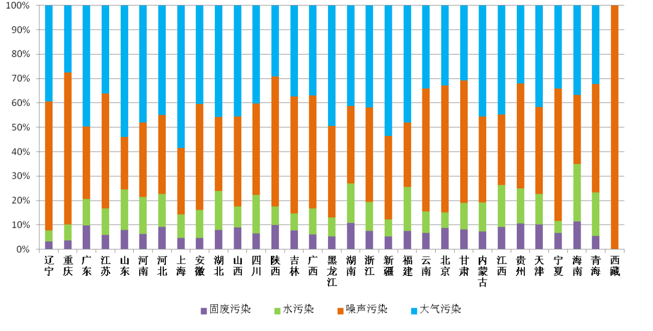 (注:一件举报中可能同时涉及多种问题,因此各污染类型之和≥100%。)
