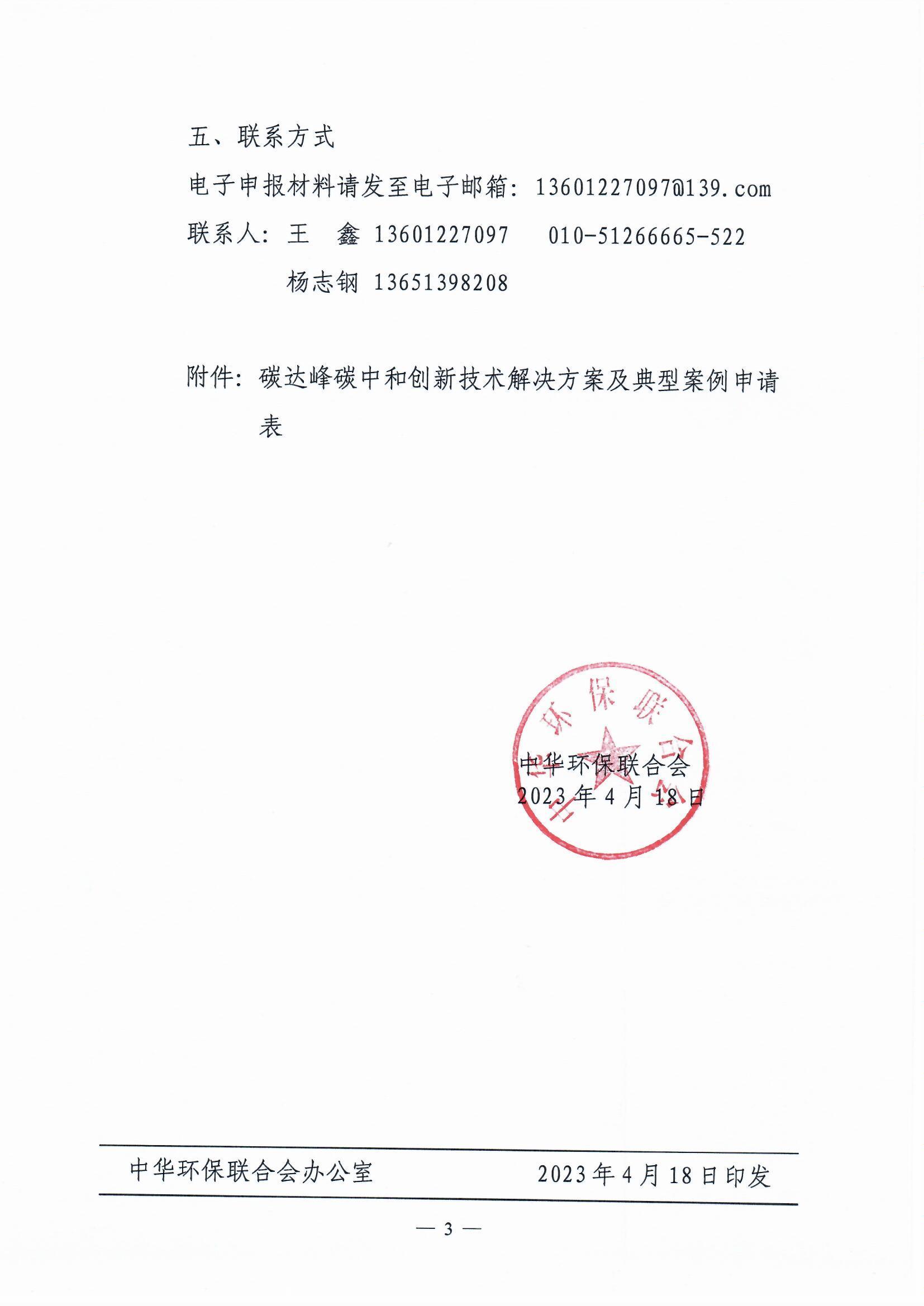 关于开展征集碳达峰碳中和创新技术解决方案及典型案例的通知(2023) (第一批)