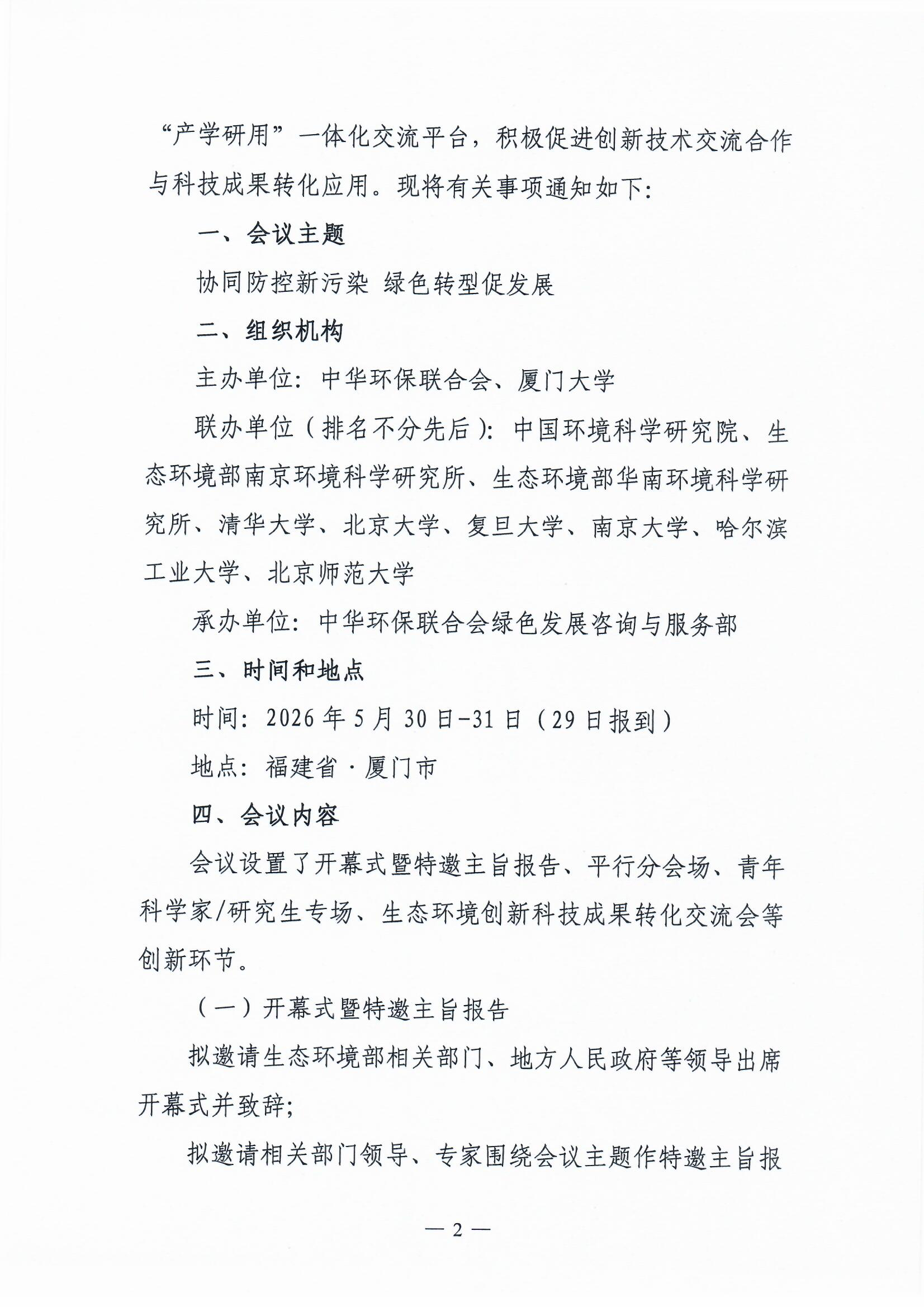 关于召开2026年新污染物应对与防控绿色交流会的通知