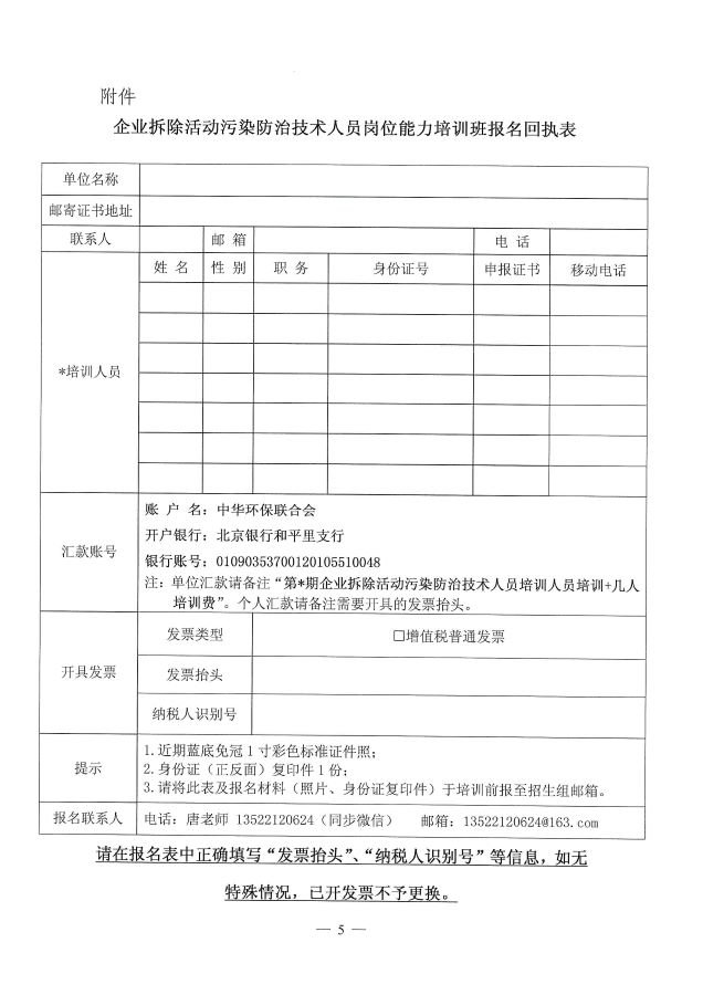 关于举办企业拆除活动污染防治技术人员岗位能力培训班的通知