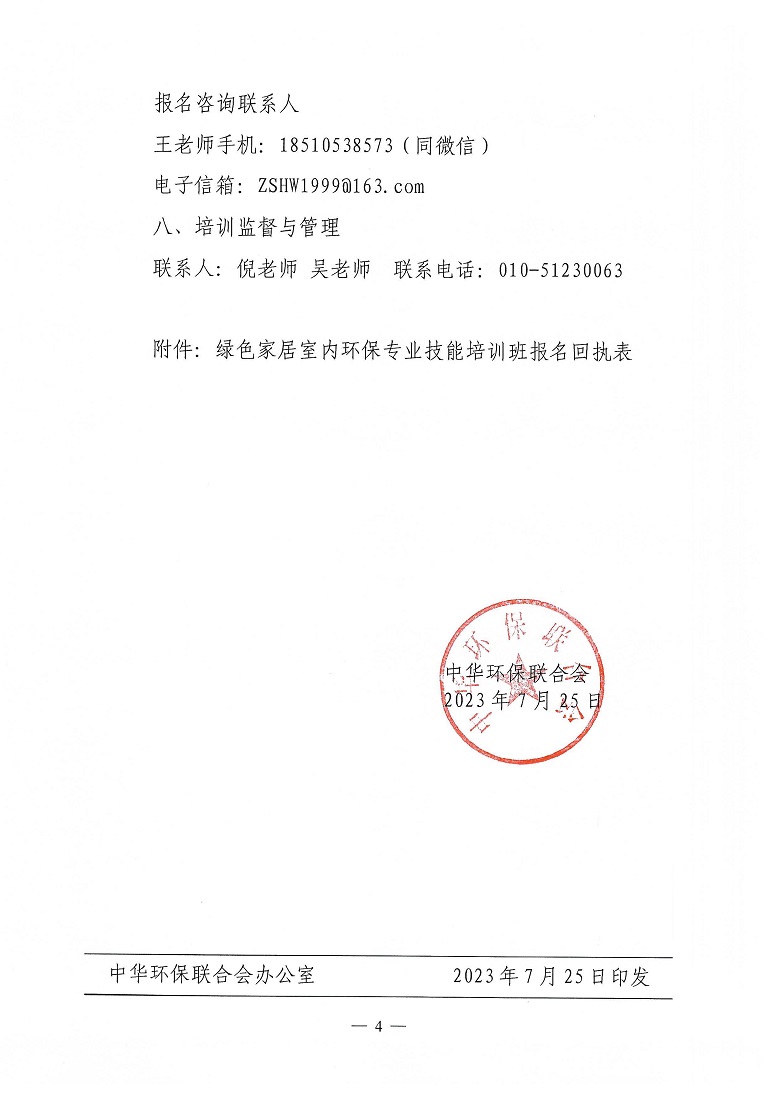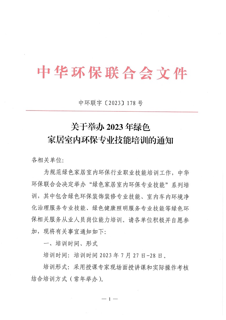关于举办2023年绿色家居室内环保专业技能培训的通知