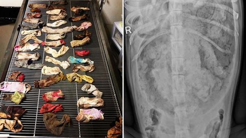 美一宠物狗肚子里藏44只颜色各异袜子